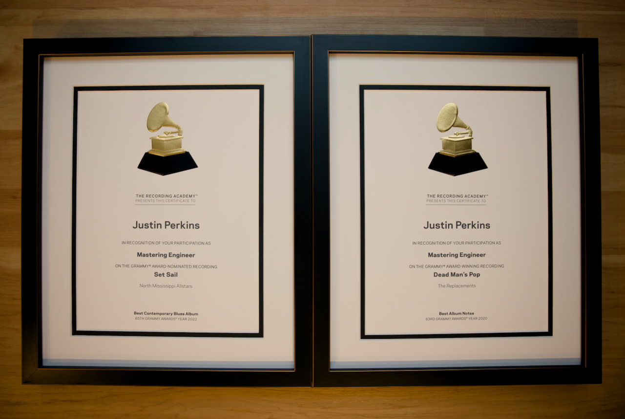 And finally, after some procrastination, shipping debacles, and further procrastination I finally got these Grammy losing certificates framed. (see below)
